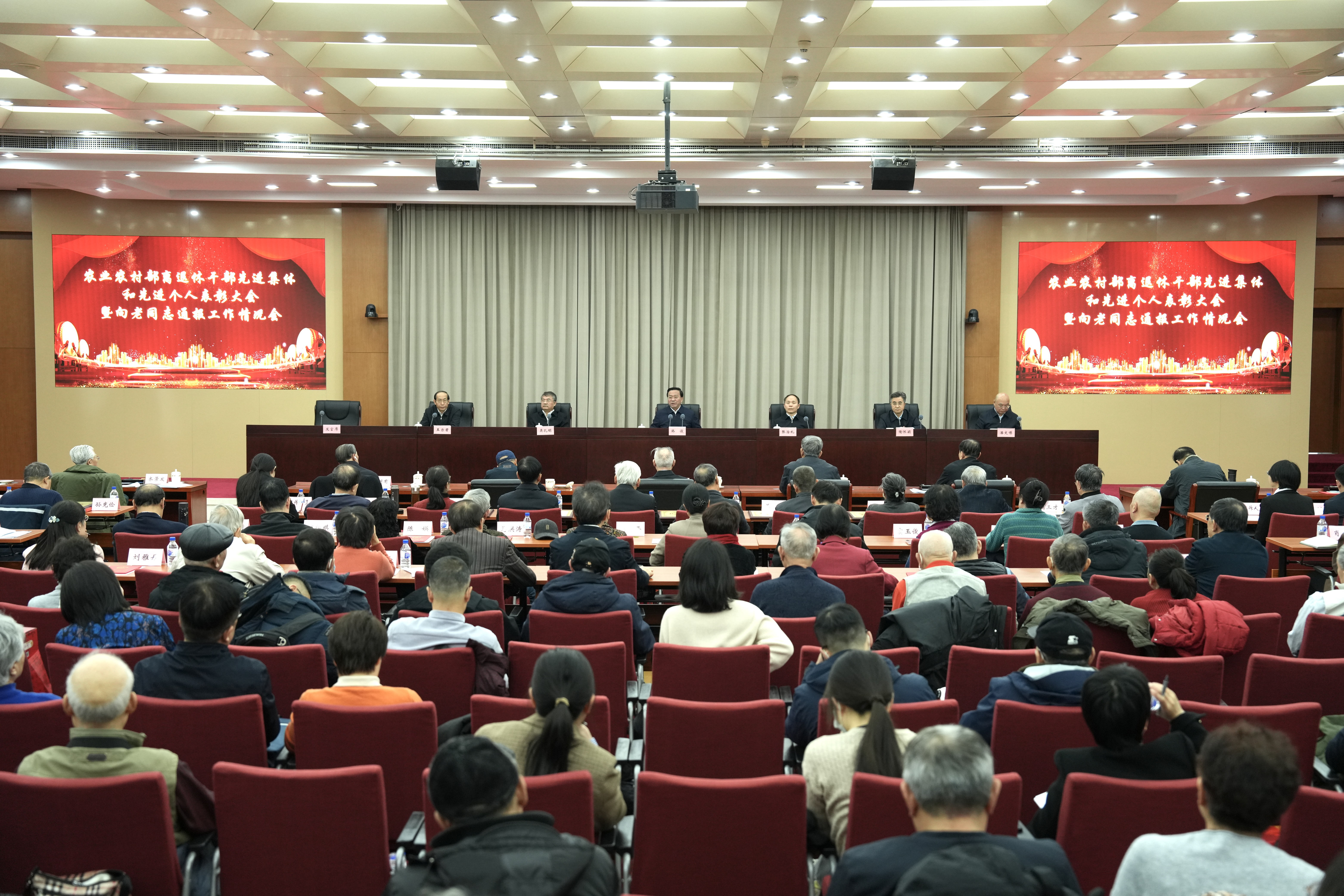 農業農村部黨組成員、副部長張治禮主持會議,部黨組成員、中國農業科學院院長吳孔明,國家首席獸醫師(官)陶懷穎,總畜牧師王樂君,總農藝師潘文博出席。會上為部系統離退休干部先進集體和先進個人代表頒獎,先進集體和先進個人代表作了發言。